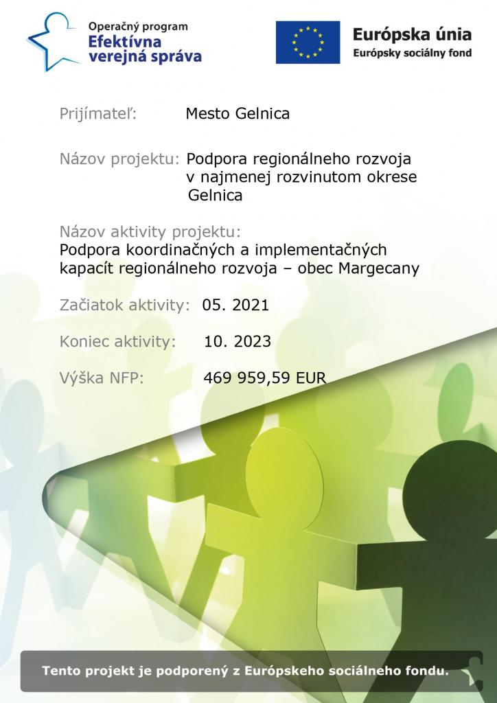 Projekt je zameraný na rozvoj najmenej rozvinutého okresu Gelnica prostredníctvom skvalitnenia systémov a optimalizácie procesov verejnej správy. Mesto Gelnica vytvorilo partnerstvo s obcami Prakovce a Margecany, pričom sa títo partneri budú podieľať na realizácií aktivít projektu. Projektom vytvoríme 5 nových pracovných miest: tri v meste Gelnica a po jednom pracovnom mieste v partnerských obciach. Zamestnanci budú vykonávať analytické činnosti alebo manažérske činnosti v prospech zavádzania inovačných a reformných opatrení pre oblasť regionálneho a miestneho územného rozvoja.