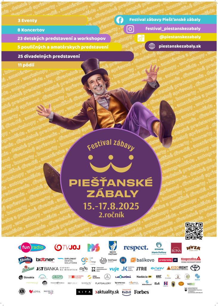 Podujatie - Festival divadla a zábavy – Piešťanské zábaly sa uskutoční už tento týždeň od 15. do 17. augusta 2025 v Piešťanoch. Jeho filozofiou je prinášať radosť smiech. Druhý ročník mestského festivalu ponúkne tri dni plné kvalitného divadla,workshopov a pouličného umenia pre celé rodiny.
