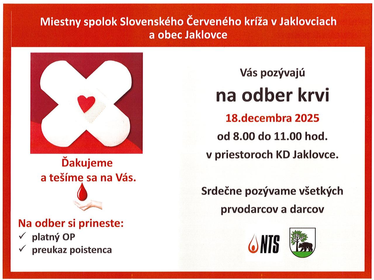 Aktuality - 18.12.2025 od 8.00-11.00 h - môžete darovať krv