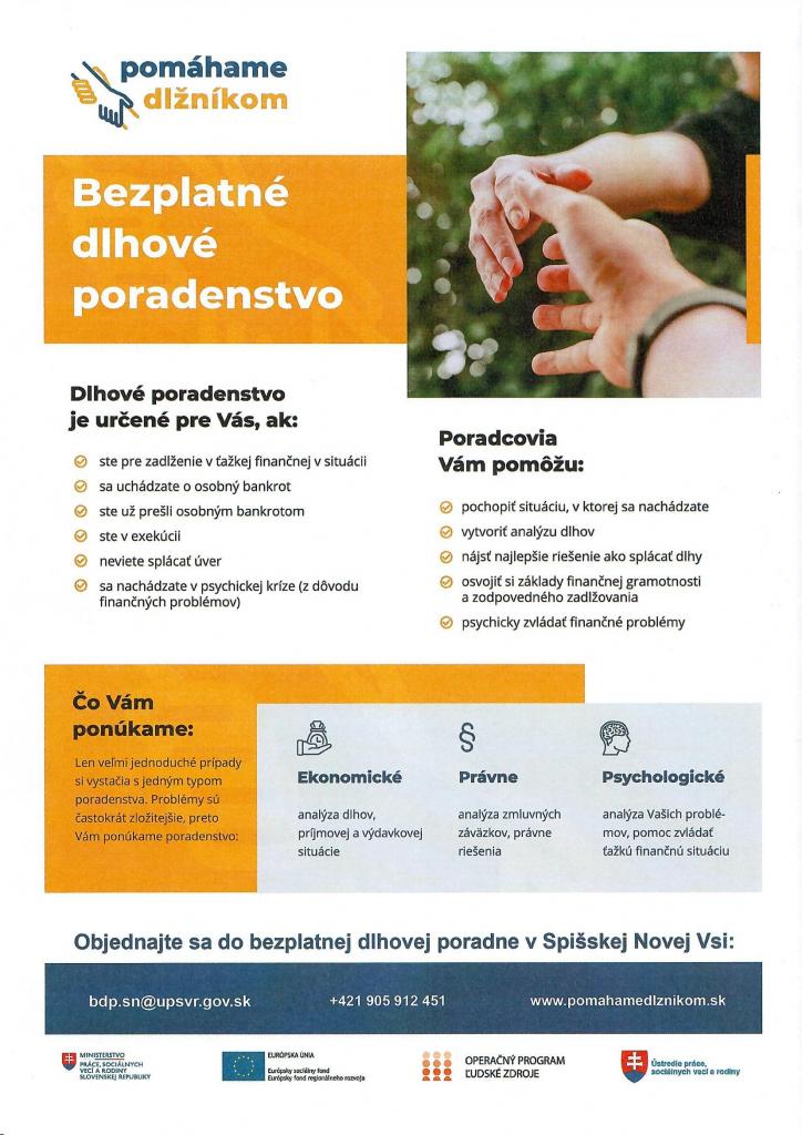 Bezplatná dlhová poradňa je zriadená v prvom rade za účelom pomoci nadmerne zadlženým občanom. Zároveň plní úlohu prevencie vzniku nadmerného zadlženia obyvateľstva. Cieľom BDP nie je len pomôcť jednotlivcovi zbaviť sa dlhov, ale zmeniť jeho celkové postoje, správanie, úroveň jeho individuálnej finančnej gramotnosti a rozpočtovej zodpovednosti tak, aby opakovaniu nadmerného zadlženia aktívne predchádzal. Hlavnou úlohou BDP je poskytovať integrované poradenstvo právnika-ekonóma-psychológa. Práve na integrácii týchto troch oblastí a na vzájomnej priamej a úzkej kooperácii troch poradenských profesií je založená hlavná idea bezplatného dlhového poradenstva. Dlhoví poradcovia klientom poskytnú bezplatnú pomoc a vytvoria plán riešenia pre konkrétnu situáciu. Poradcovia pomôžu pochopiť situáciu, v ktorej sa človek nachádza, vytvoria analýzu dlhov a nájdu najlepšie riešenie ako splácať dlhy.