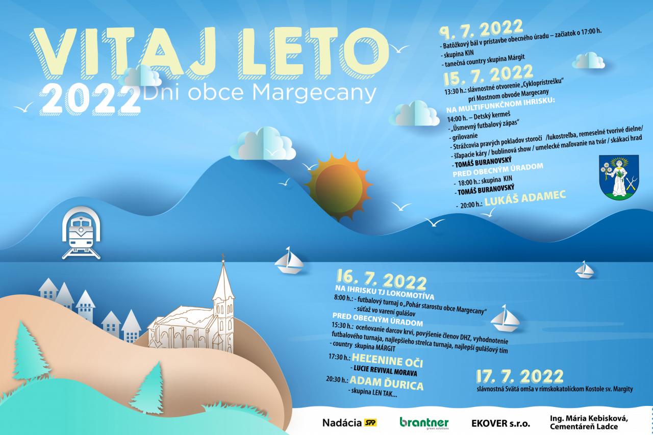 Srdečne všetkých pozývame na Dni obce MARGECANY - VITAJ LETO 15. a 16. júla 2022.