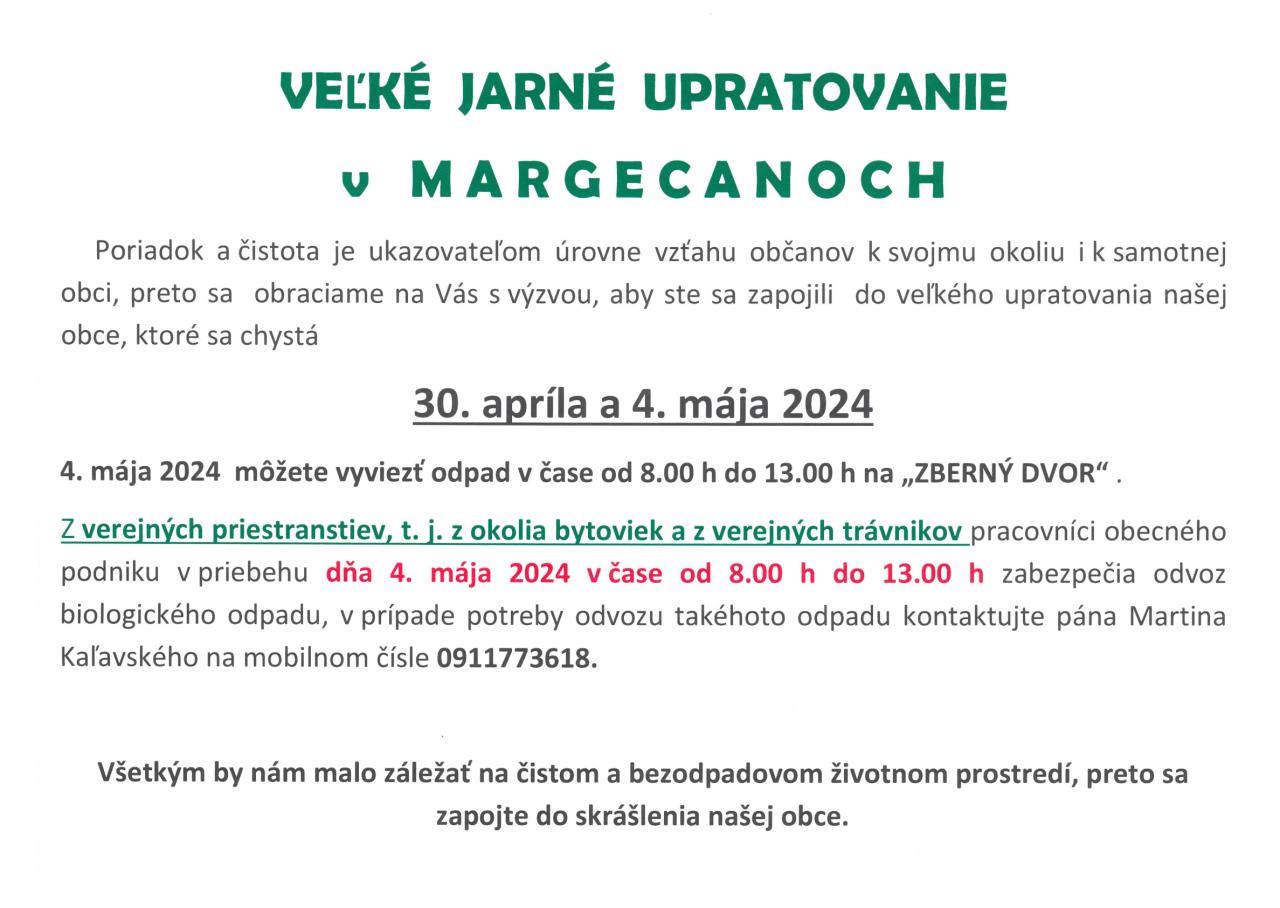 Aktuality - Jarné upratovanie 30. apríla a 4. mája 2024
