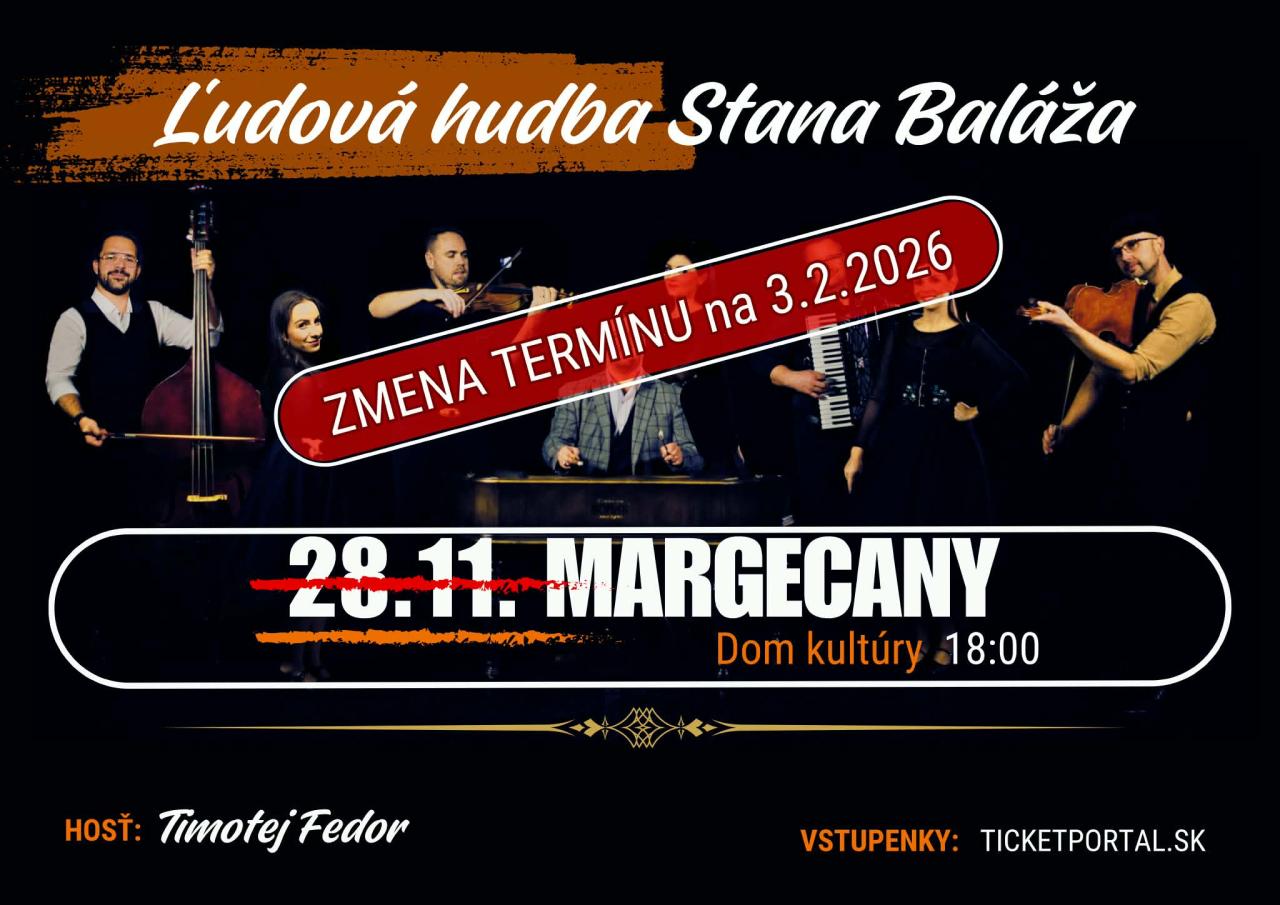 Aktuality - Koncert Ľudovej hudby Stana Baláža sa prekladá!!!