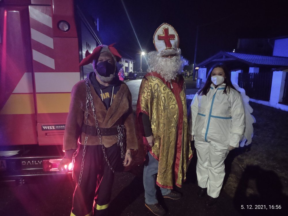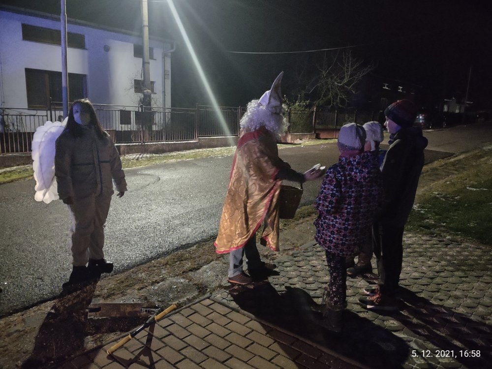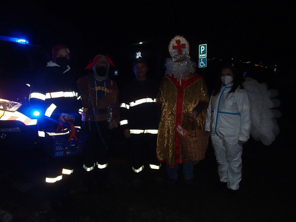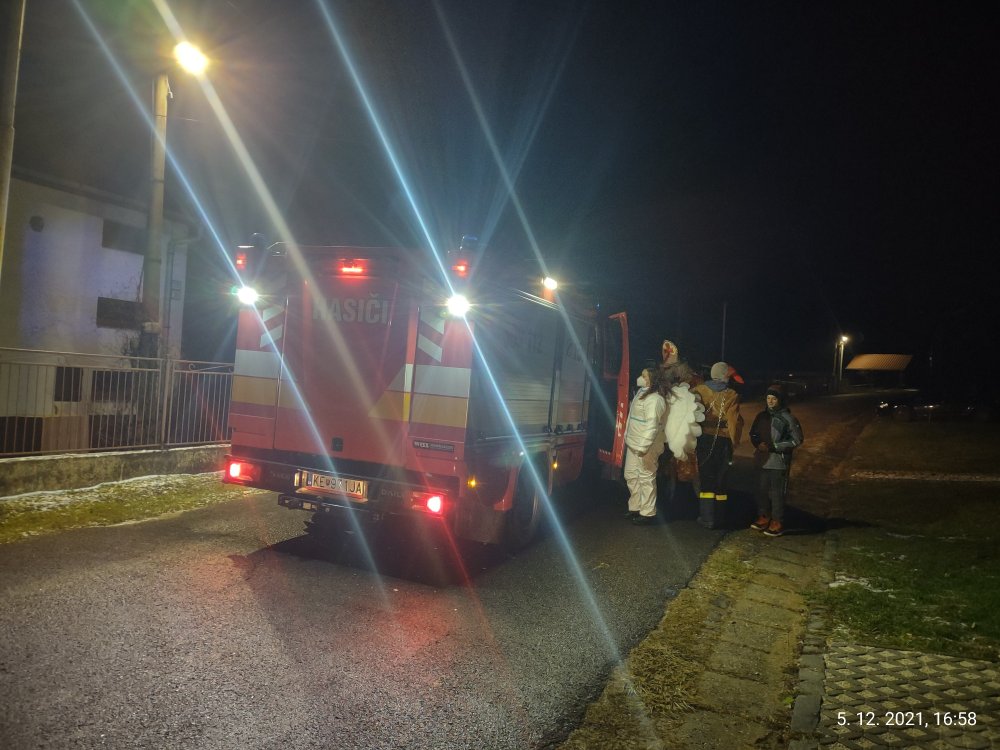 Mikuláš s pomocníkmi prechádzal obcou v hasičskom aute, aby obdaroval všetky margecianske deti priamo pri ich domoch.