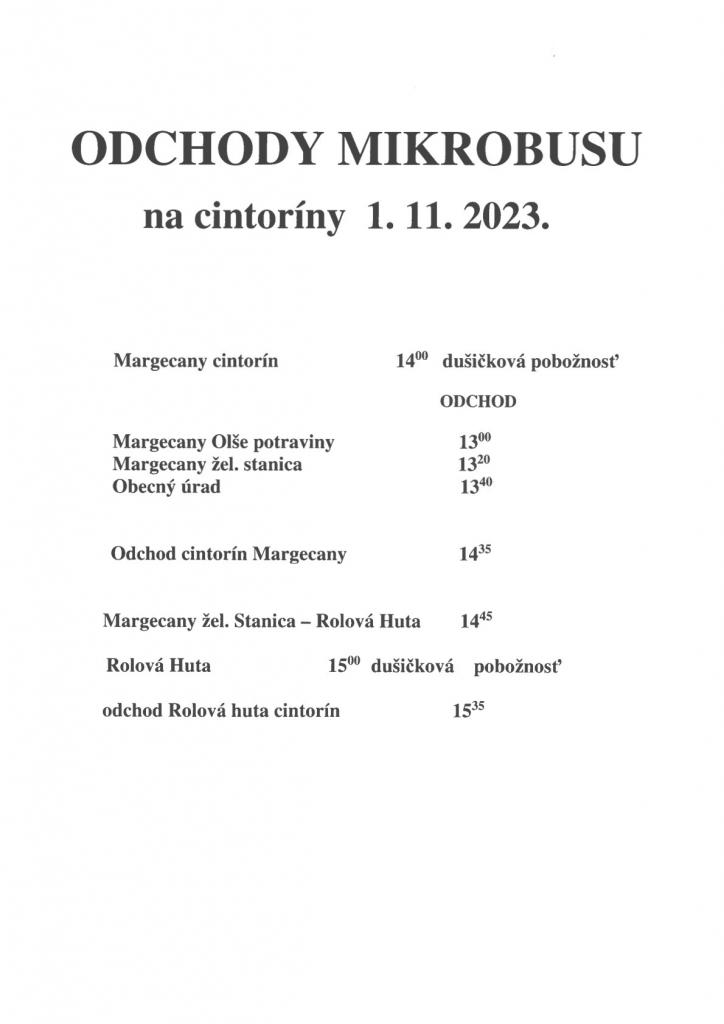 Aktuality - Odchody mikrobusu na cintoríny 1.11.2023