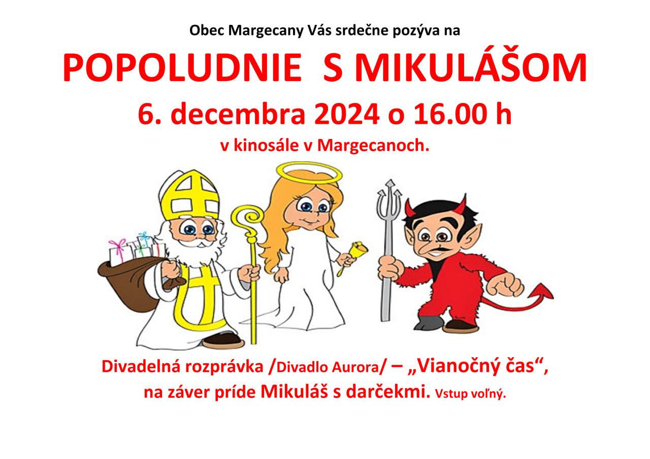 Divadlo AURORA sa predvedie v divadelnej rozprávke "VIANOČNÝ ČAS" a na záver príde Mikuláš s chutnými darčekmi.