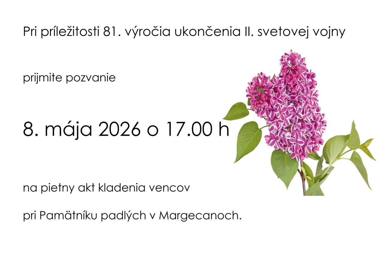8. mája 2026 o 17.00 h pri Pamätníku padlých - Margecany