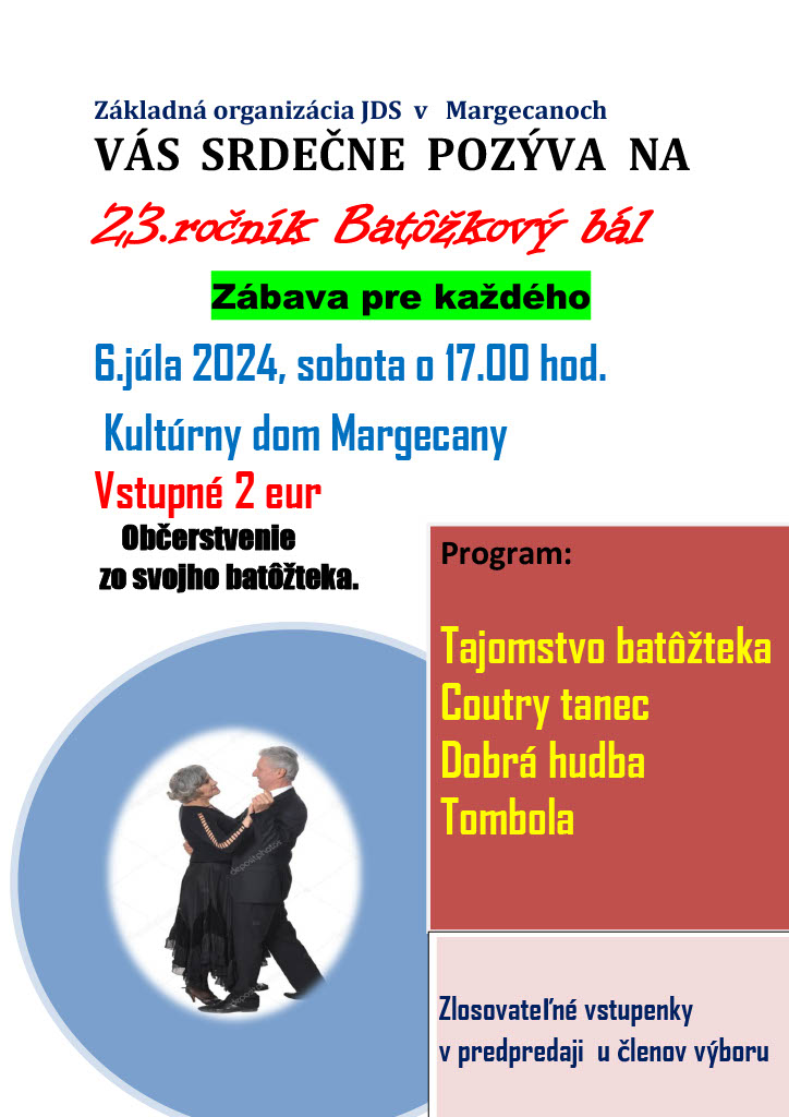 6.7.2024 o 17.00 h v prístavbe KD Margecany sa koná "Batôžkový bál" - vstupné 2€, zahrá skupina KIN,