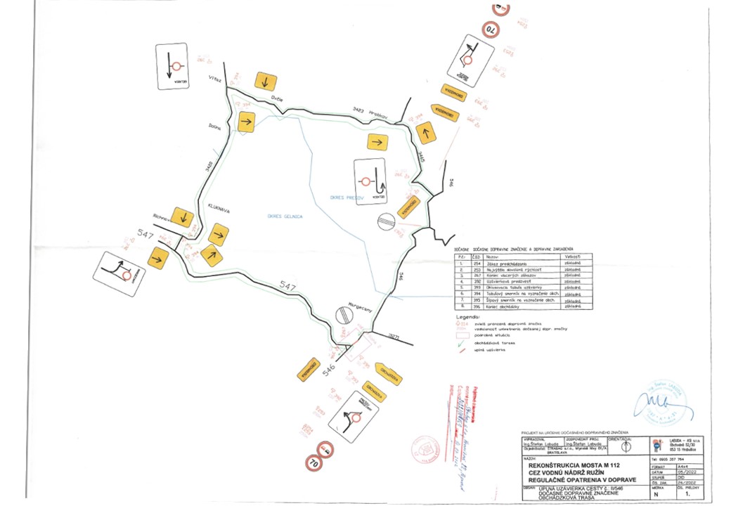 Popis a určenie obchádzky : Obchádzková trasa bude obojsmerná. Cestná premávka bude z cesty II/546 presmerovaná na obchádzkovú trasu ktorá povedie po ceste II/547 a III/3420 cez obec Kluknava do obce Víťaz. Následne bude vedená po ceste III/3423 do obce Hrabkov. Ďalej po ceste č. III/3465 a bude končiť v križovatke s cestou II/546. Na zabezpečenie bezpečnosti a plynulosti cestnej premávky na uvedenom komunikačnom systéme sú navrhnuté regulačné opatrenia v doprave.