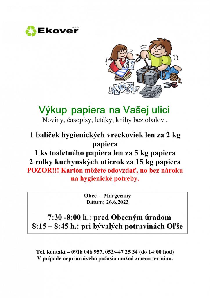 Výkup papiera 26.6.2023