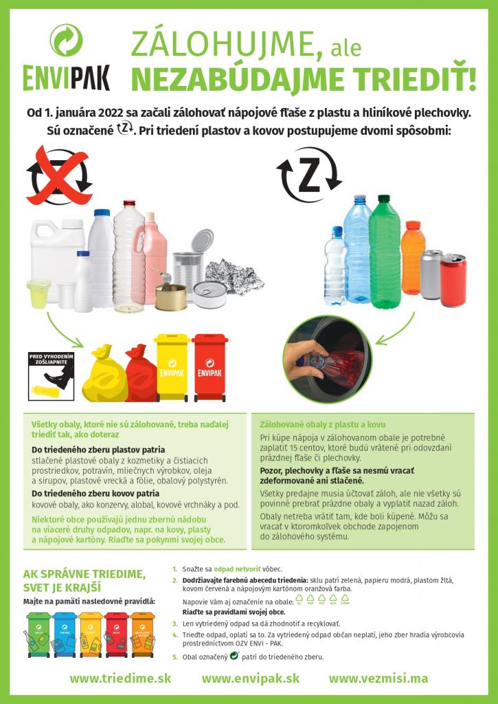 treba naďalej triediť tak, ako doteraz. Do triedeného zberu plastov patria stlačené plastové obaly z kozmetiky a čistiacich prostriedkov, potravín, mliečnych výrobkov, oleja a sirupov, plastové vrecká a fólie, obalový polystyrén.