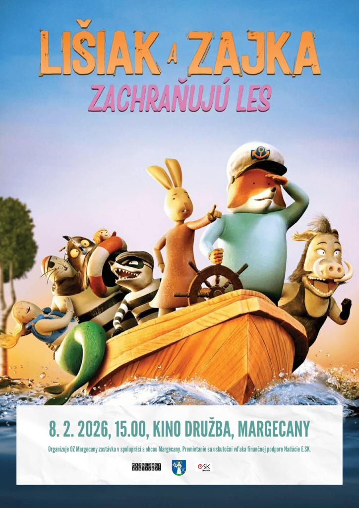Pozývame na fašiangové detské premietanie filmu „Lišiak a zajka zachraňujú les“ v nedeľu 08.02.2026 o 15:00 v kinosále obce Margecany.