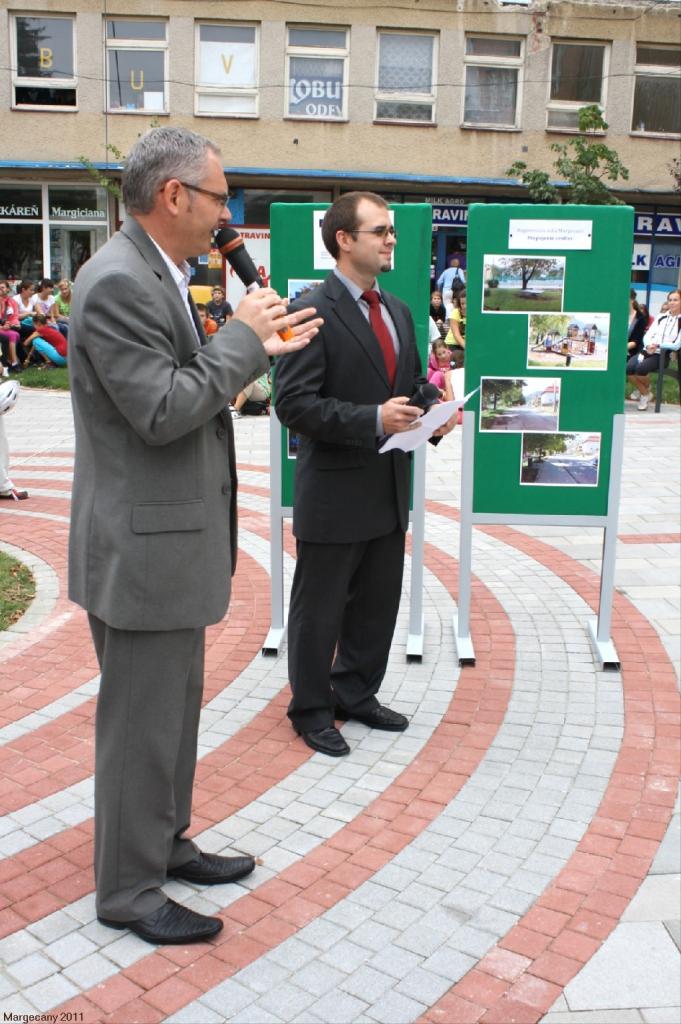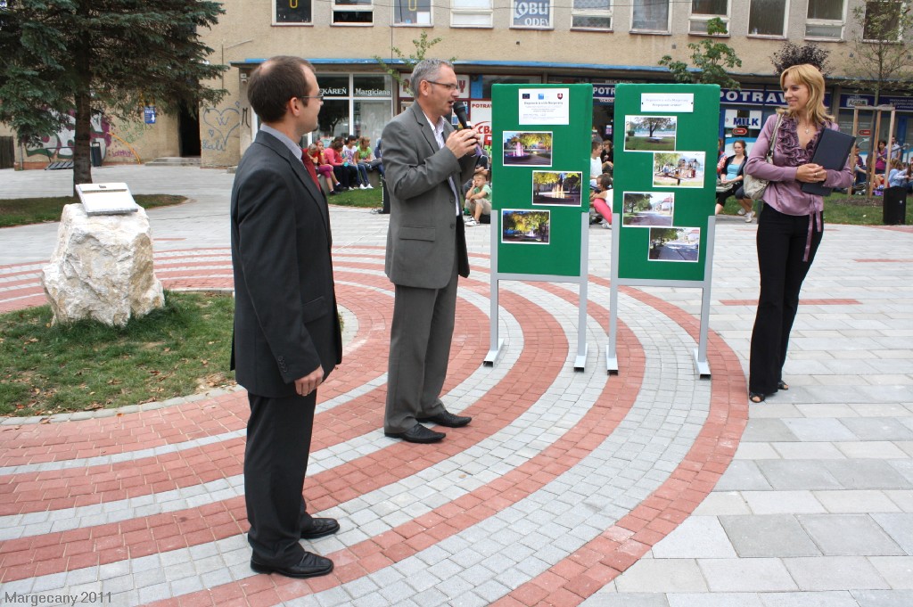 Vo fotogalérii je zachytené odhaľovanie pamätných tabúľ k zmienenému projektu „Regenerácie sídla Margecany“ v priestore pred železničnou stanicou a zóne pred OcÚ.