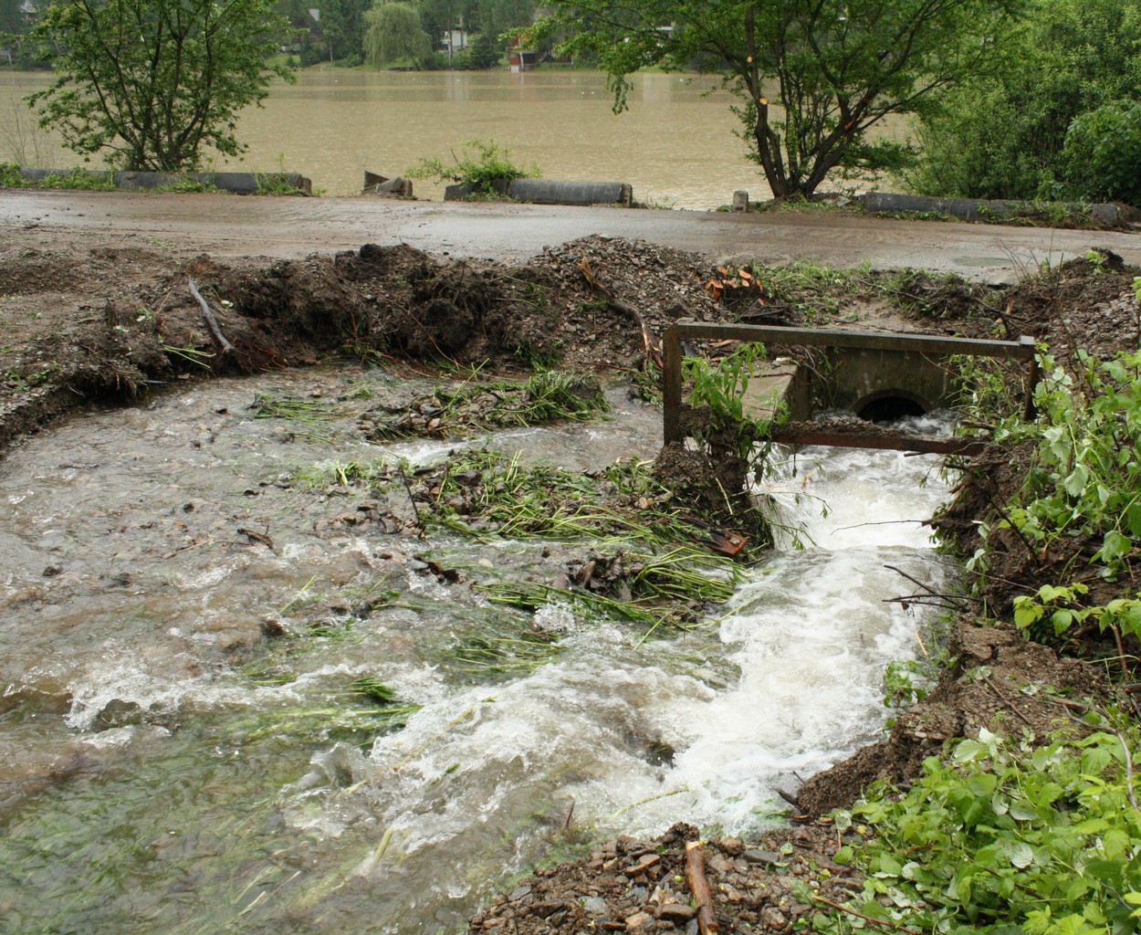 Po poklese vody a vyčistení priepustu bola sprejazdnená.