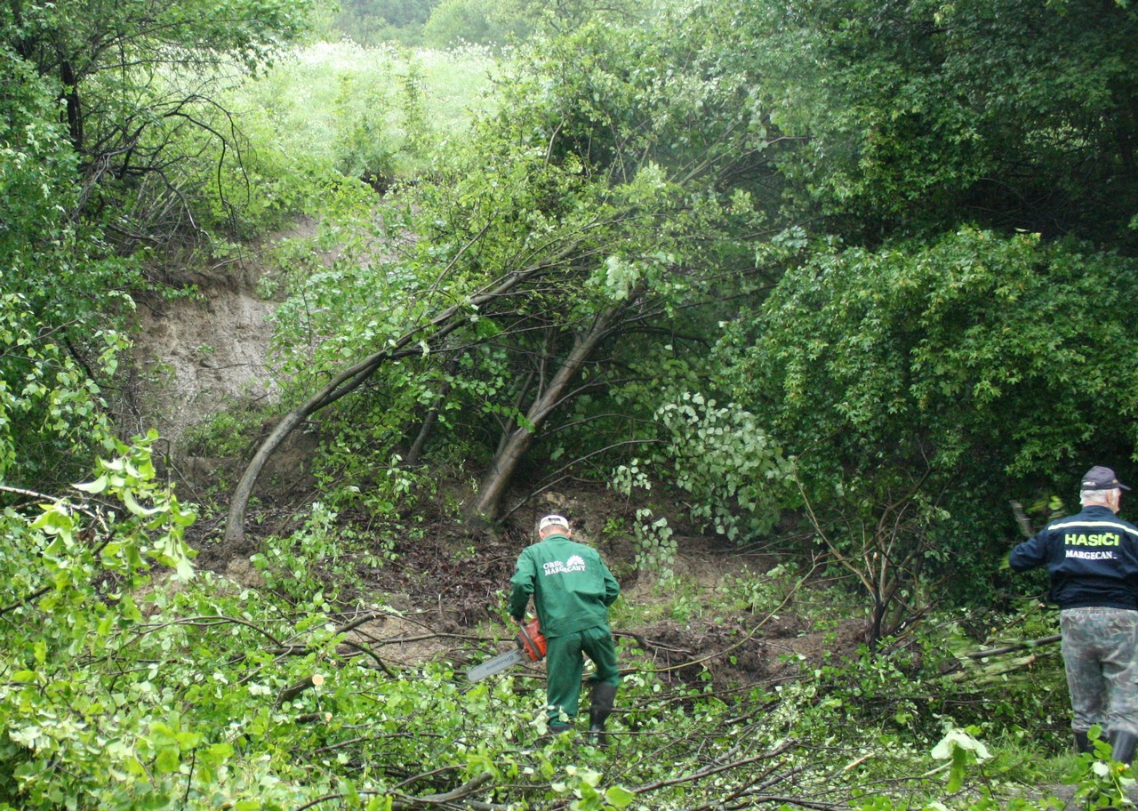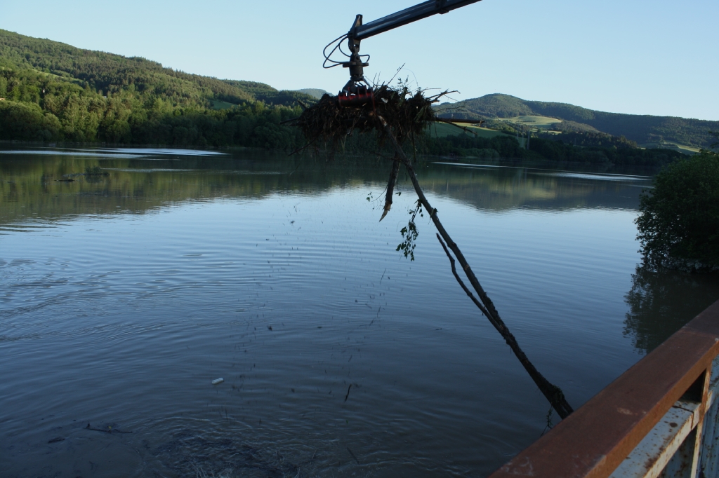 Na pilieroch mosta došlo k zachytávaniu stromov a iných naplavených nečistôt, ktoré boli priebežne odstraňované mechanizmom TATRA 815 s hydraulickou rukou.