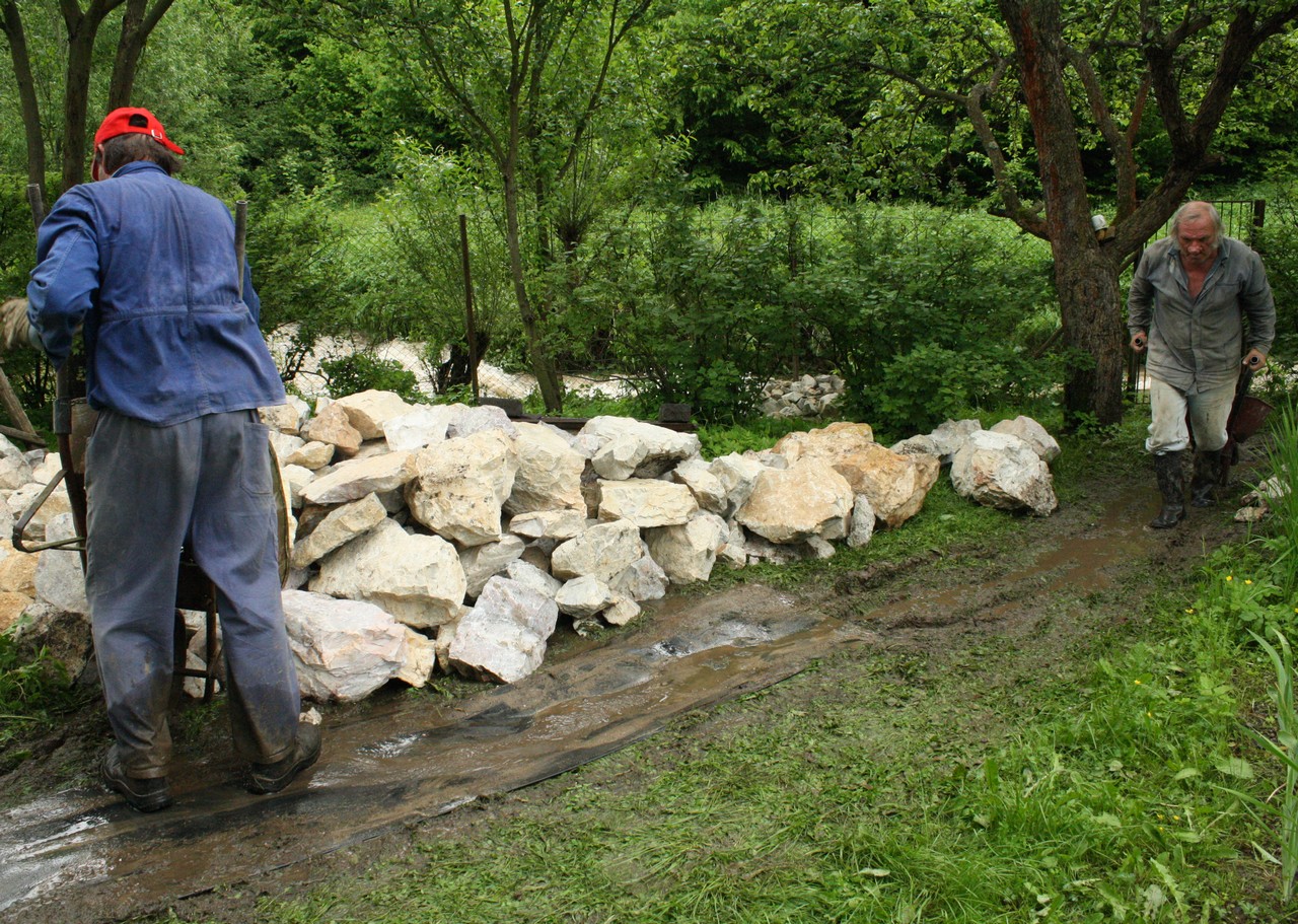 Na spevnenie brehov Bystrého potoka sa použilo viac ako 150 ton lomového kameňa.